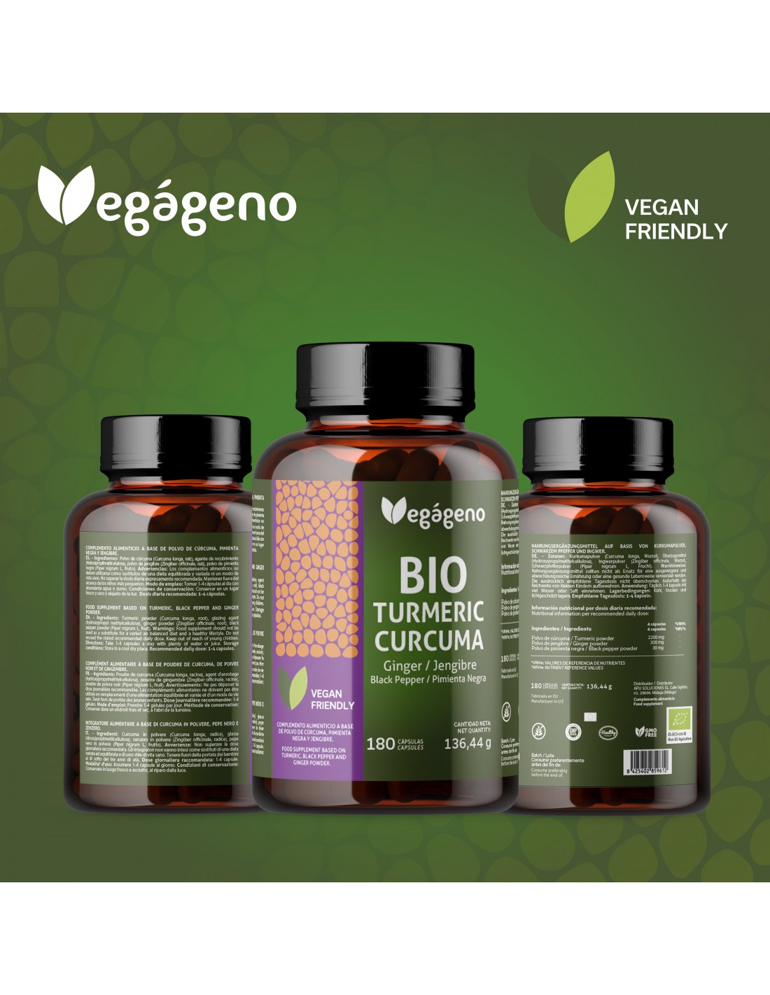 - LA CÚRCUMA ORGANICA VEGÁGENO es cultivada en el mejor entorno natural libre de residuos tóxicos procedentes de pesticidas, antibióticos, fertilizantes sintéticos, aditivos y conservantes. Llas excelentes propiedades nutricionales y garantizando la máxima pureza de la Curcumina (componente Bioactivo de la Curcuma).